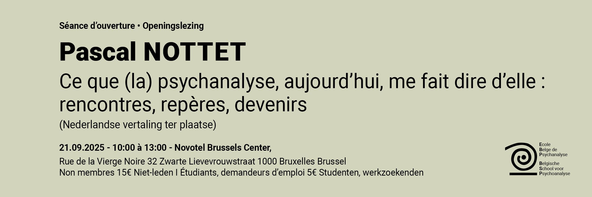 21/09/2025 Séance d'Ouverture / Openingslezing Pascal Nottet: Ce que (la) psychanalyse, aujourd'hui, me fait dire d'elle : rencontres, repères, devenirs